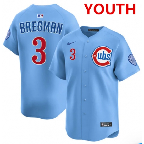 >Youth Chicago Cubs #3 Alex Bregman light Blue alternate limited jersey