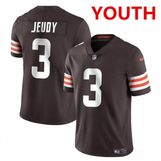>Youth Cleveland Browns #3 Jerry Jeudy Brown Vapor Limited Stitched Football Jersey
