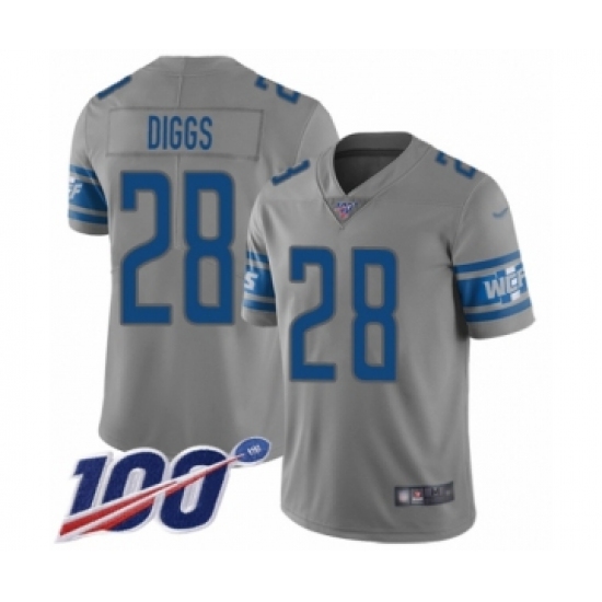 >Youth Detroit Lions #28 Quandre Diggs Limited Gray Inverted Legend 100th Season Football Jersey