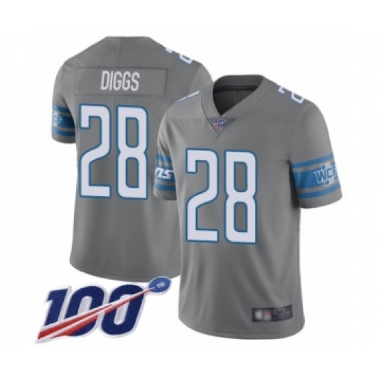 Men's Detroit Lions #28 Quandre Diggs Limited Steel Rush Vapor Untouchable 100th Season Football Jersey