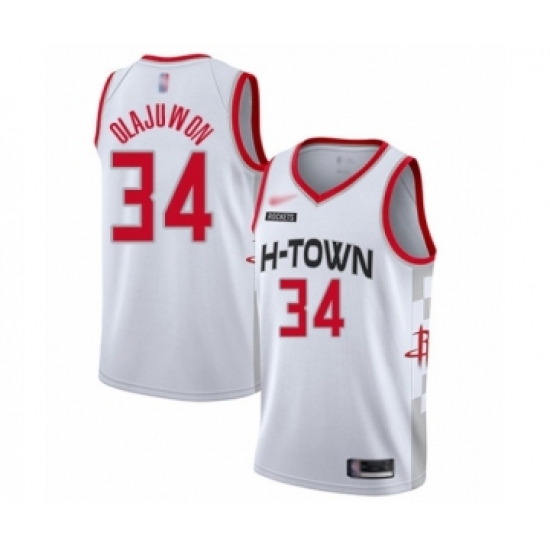 Women's Houston Rockets #34 Hakeem Olajuwon Swingman White Basketball Jersey - 2019 20 City Edition