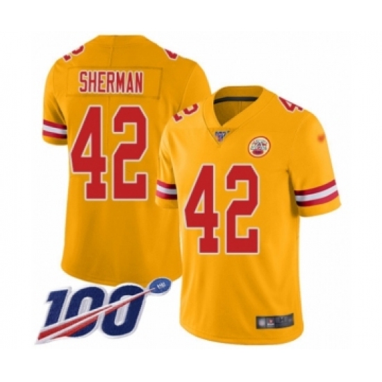 >Youth Kansas City Chiefs #42 Anthony Sherman Limited Gold Inverted Legend 100th Season Football Jersey