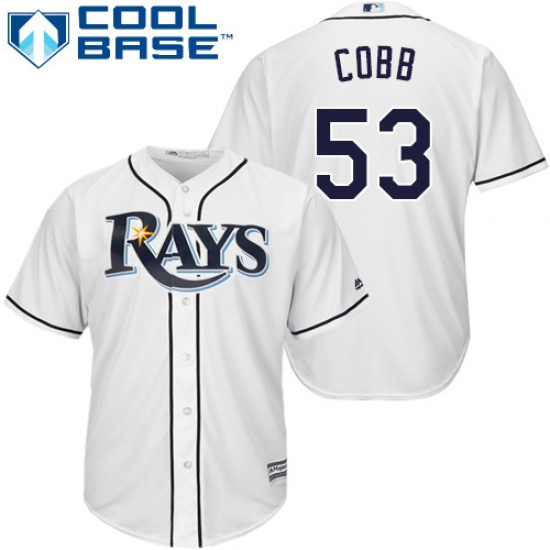 Home>MLB>Tampa Bay Rays>Alex Cobb>Youth Majestic Tampa Bay Rays #53 Alex Cobb Authentic White Home Cool Base MLB Jersey