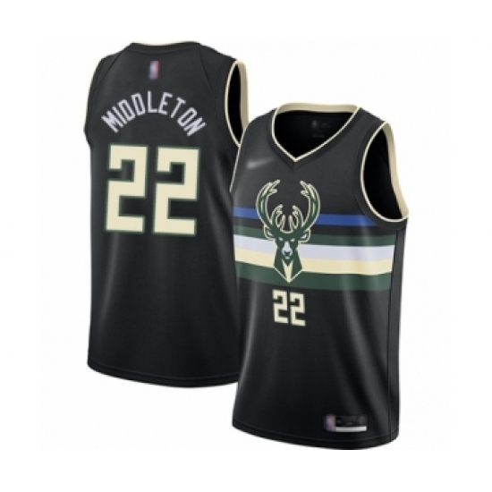 >Youth Milwaukee Bucks #22 Khris Middleton Swingman Black Finished Basketball Jersey - Statement Edition