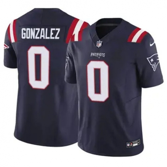 Youth New England Patriots #0 Christian Gonzalez Blue Stitched Vapor Limited Jersey