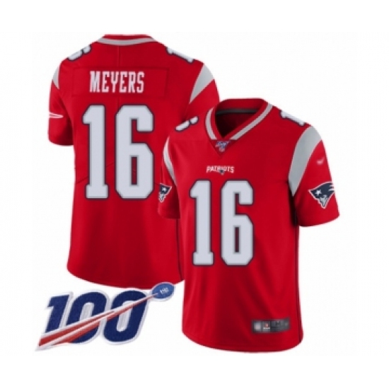 >Youth New England Patriots #16 Jakobi Meyers Limited Red Inverted Legend 100th Season Football Jersey
