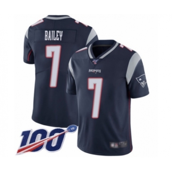 Youth New England Patriots #7 Jake Bailey Navy Blue Team Color Vapor Untouchable Limited Player 100th Season Football Jersey
