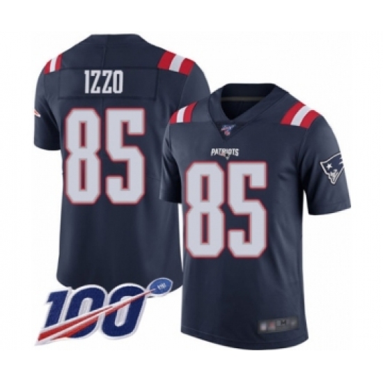 >Youth New England Patriots #85 Ryan Izzo Limited Navy Blue Rush Vapor Untouchable 100th Season Football Jersey