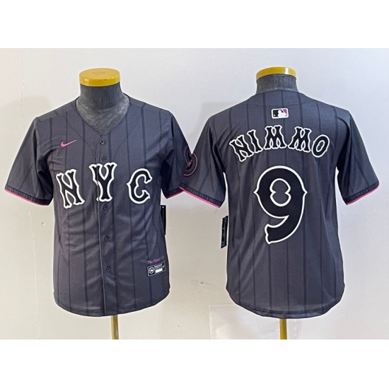 >Youth New York Mets #9 Brandon Nimmo Gray 2024 City Connect Cool Base Stitched Jersey