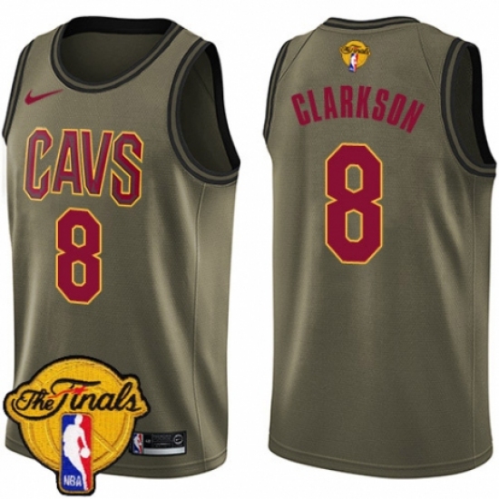 >Youth Nike Cleveland Cavaliers #8 Jordan Clarkson Swingman Green Salute to Service 2018 NBA Finals Bound NBA Jersey