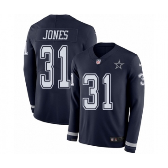 Men's Nike Dallas Cowboys #31 Byron Jones Limited Navy Blue Therma Long Sleeve NFL Jersey