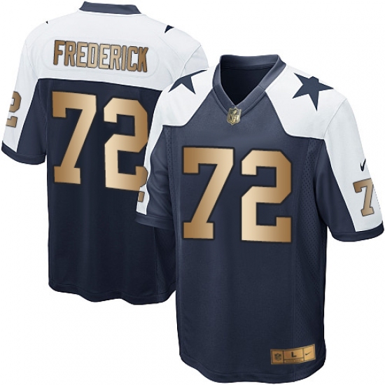 Home>NFL>Dallas Cowboys>Travis Frederick>Youth Nike Dallas Cowboys #72 Travis Frederick Elite Navy/Gold Throwback Alternate NFL Jersey
