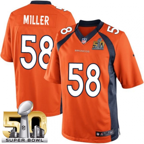Youth Nike Denver Broncos #58 Von Miller Limited Orange Team Color Super Bowl 50 Bound NFL Jersey