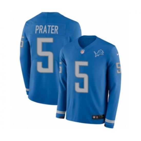 >Youth Nike Detroit Lions #5 Matt Prater Limited Blue Therma Long Sleeve NFL Jersey