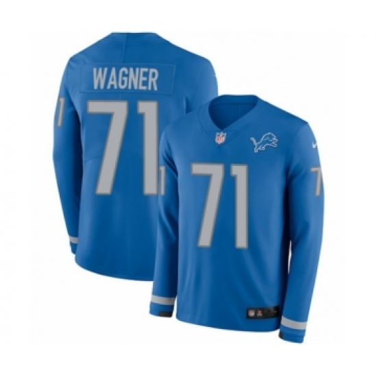 >Youth Nike Detroit Lions #71 Ricky Wagner Limited Blue Therma Long Sleeve NFL Jersey
