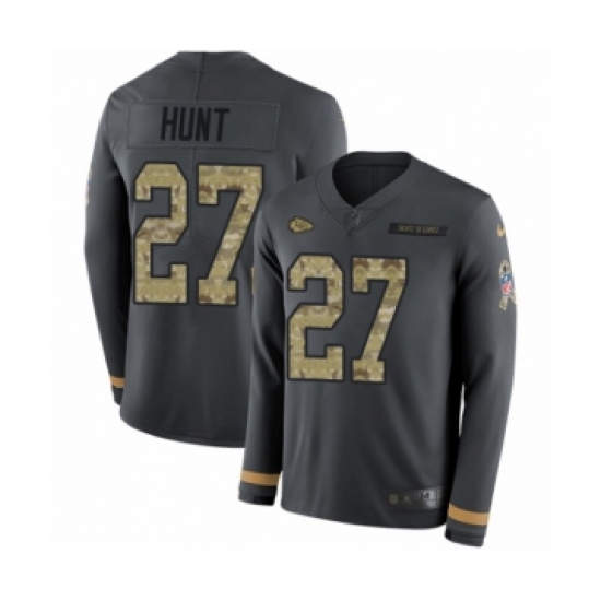 >Youth Nike Kansas City Chiefs #27 Kareem Hunt Limited Black Salute to Service Therma Long Sleeve NFL Jersey