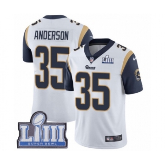 >Youth Nike Los Angeles Rams #35 C.J. Anderson White Vapor Untouchable Limited Player Super Bowl LIII Bound NFL Jersey