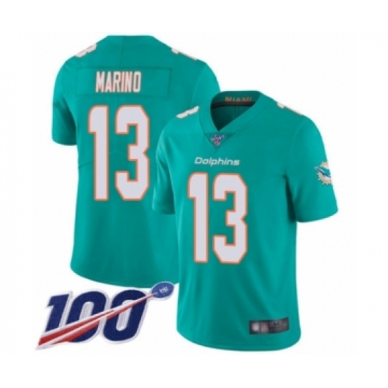 >Youth Nike Miami Dolphins #13 Dan Marino Aqua Green Team Color Vapor Untouchable Limited Player 100th Season NFL Jersey