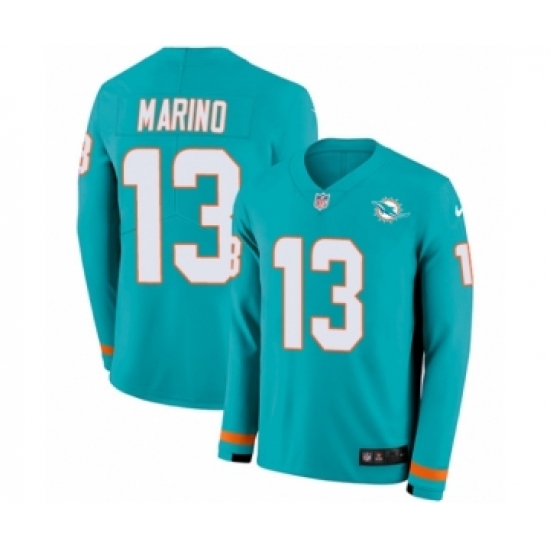 >Youth Nike Miami Dolphins #13 Dan Marino Limited Aqua Therma Long Sleeve NFL Jersey