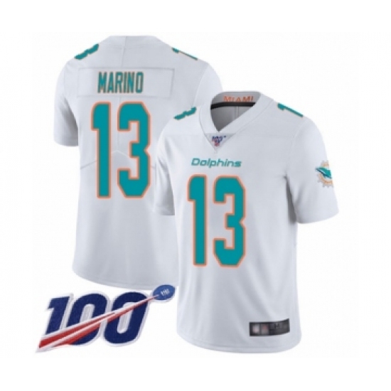 >Youth Nike Miami Dolphins #13 Dan Marino White Vapor Untouchable Limited Player 100th Season NFL Jersey
