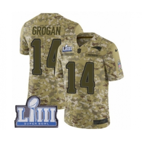 Men's Nike New England Patriots #14 Steve Grogan Limited Camo 2018 Salute to Service Super Bowl LIII Bound NFL Jersey