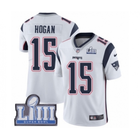 Men's Nike New England Patriots #15 Chris Hogan White Vapor Untouchable Elite Player Super Bowl LIII Bound NFL Jersey