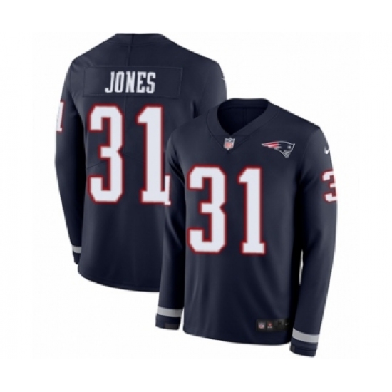 >Youth Nike New England Patriots #31 Jonathan Jones Limited Navy Blue Therma Long Sleeve NFL Jersey
