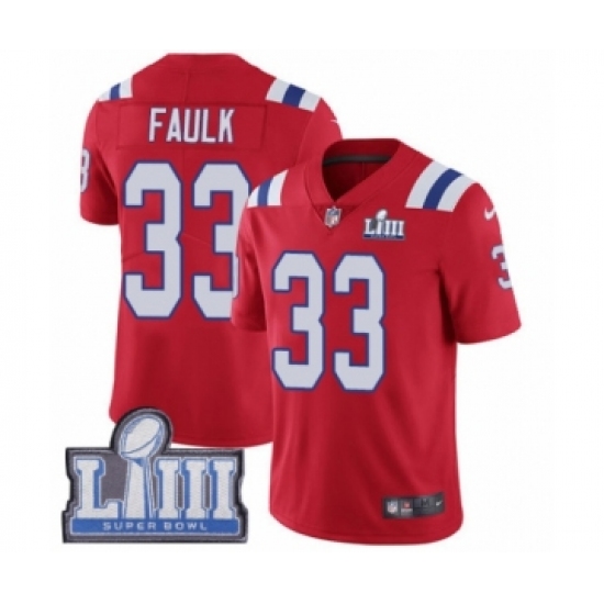 >Youth Nike New England Patriots #33 Kevin Faulk Red Alternate Vapor Untouchable Limited Player Super Bowl LIII Bound NFL Jersey