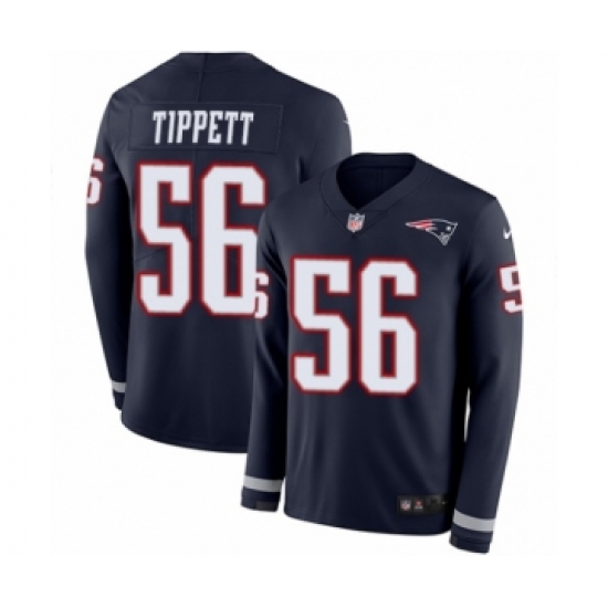 >Youth Nike New England Patriots #56 Andre Tippett Limited Navy Blue Therma Long Sleeve NFL Jersey