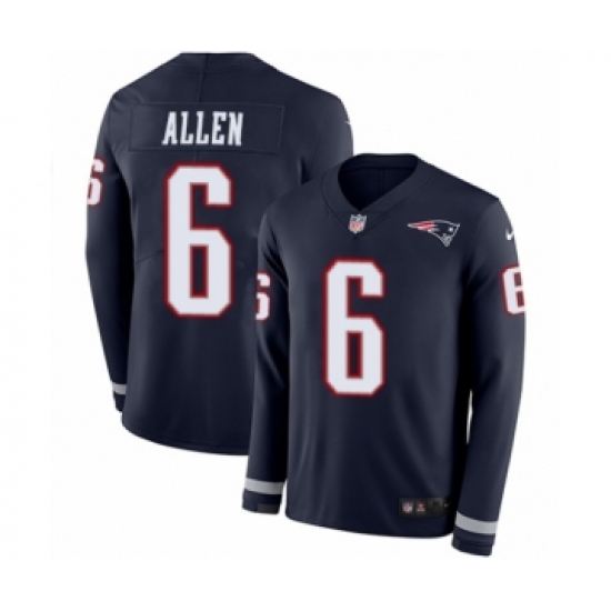 >Youth Nike New England Patriots #6 Ryan Allen Limited Navy Blue Therma Long Sleeve NFL Jersey