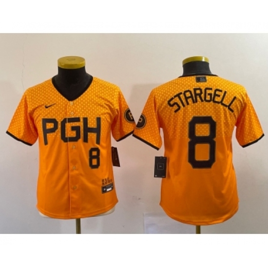 Youth Nike Pittsburgh Pirates #8 Willie Stargell Number Yellow 2023 City Connect Stitched Jersey