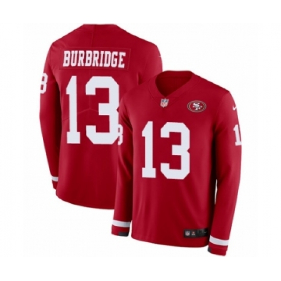 >Youth Nike San Francisco 49ers #13 Aaron Burbridge Limited Red Therma Long Sleeve NFL Jersey