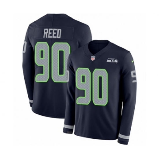 Youth Nike Seattle Seahawks #90 Jarran Reed Limited Navy Blue Therma Long Sleeve NFL Jersey