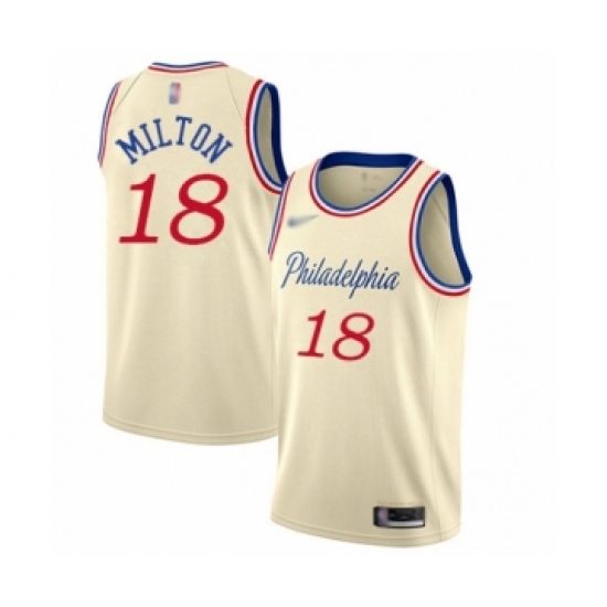 >Youth Philadelphia 76ers #18 Shake Milton Swingman Cream Basketball Jersey - 2019 20 City Edition