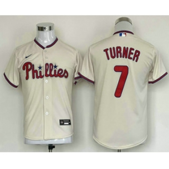 >Youth Philadelphia Phillies #7 Trea Turner Cream Stitched MLB Cool Base Nike Jersey