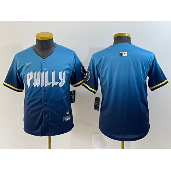 Youth Philadelphia Phillies Blank Blue 2024 City Cool Base Stitched Jersey