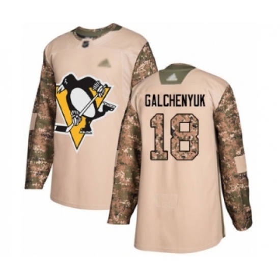 >Youth Pittsburgh Penguins #18 Alex Galchenyuk Authentic Camo Veterans Day Practice Hockey Jersey
