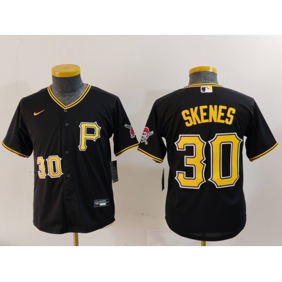 >Youth Pittsburgh Pirates #30 Paul Skenes Number Black Stitched Cool Base Nike Jersey