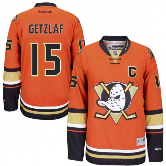 Youth Reebok Anaheim Ducks #15 Ryan Getzlaf Premier Orange Third NHL Jersey