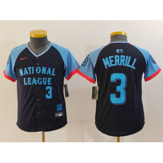 >Youth San Diego Padres #3 Jackson Merrill Number Navy 2024 All Star Limited Stitched Jersey