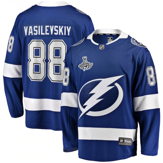 Youth Tampa Bay Lightning #88 Andrei Vasilevskiy Fanatics Branded Blue Home 2020 Stanley Cup Champions Breakaway Jersey