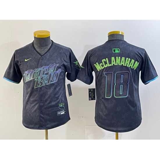 Youth Tampa Bay Rays #18 Shane McClanahan Charcoal 2024 City Connect Limited Cool Base Jersey