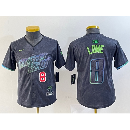 >Youth Tampa Bay Rays #8 Brandon Lowe Charcoal 2024 City Connect Player Number Limited Cool Base Jerseys