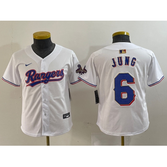 Youth Texas Rangers #32 Evan Carter Number White 2024 Gold Collection Limited Cool Base Jersey